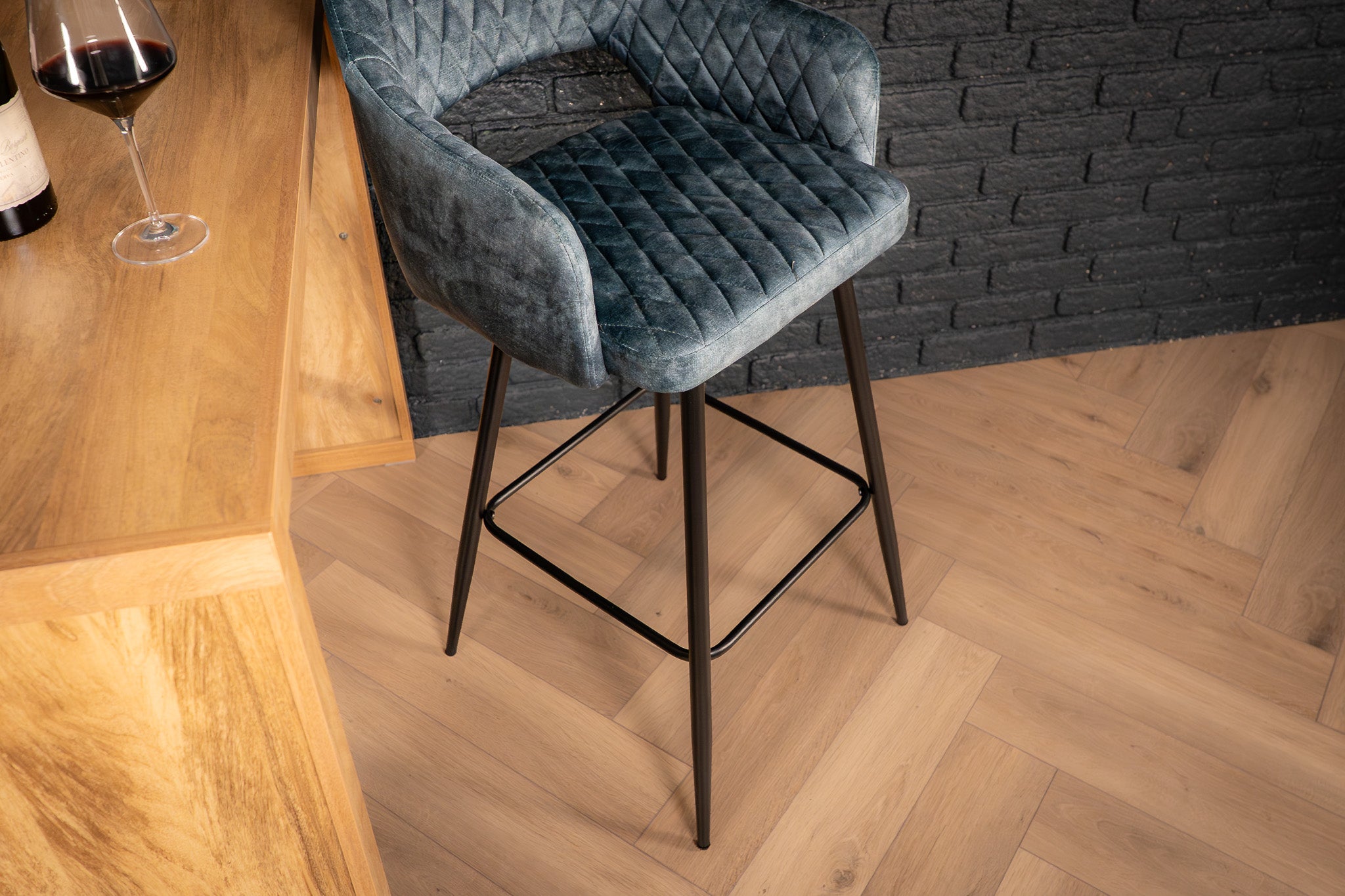 Glamorous barstool with a luxurious petrol blue velvet seat shell