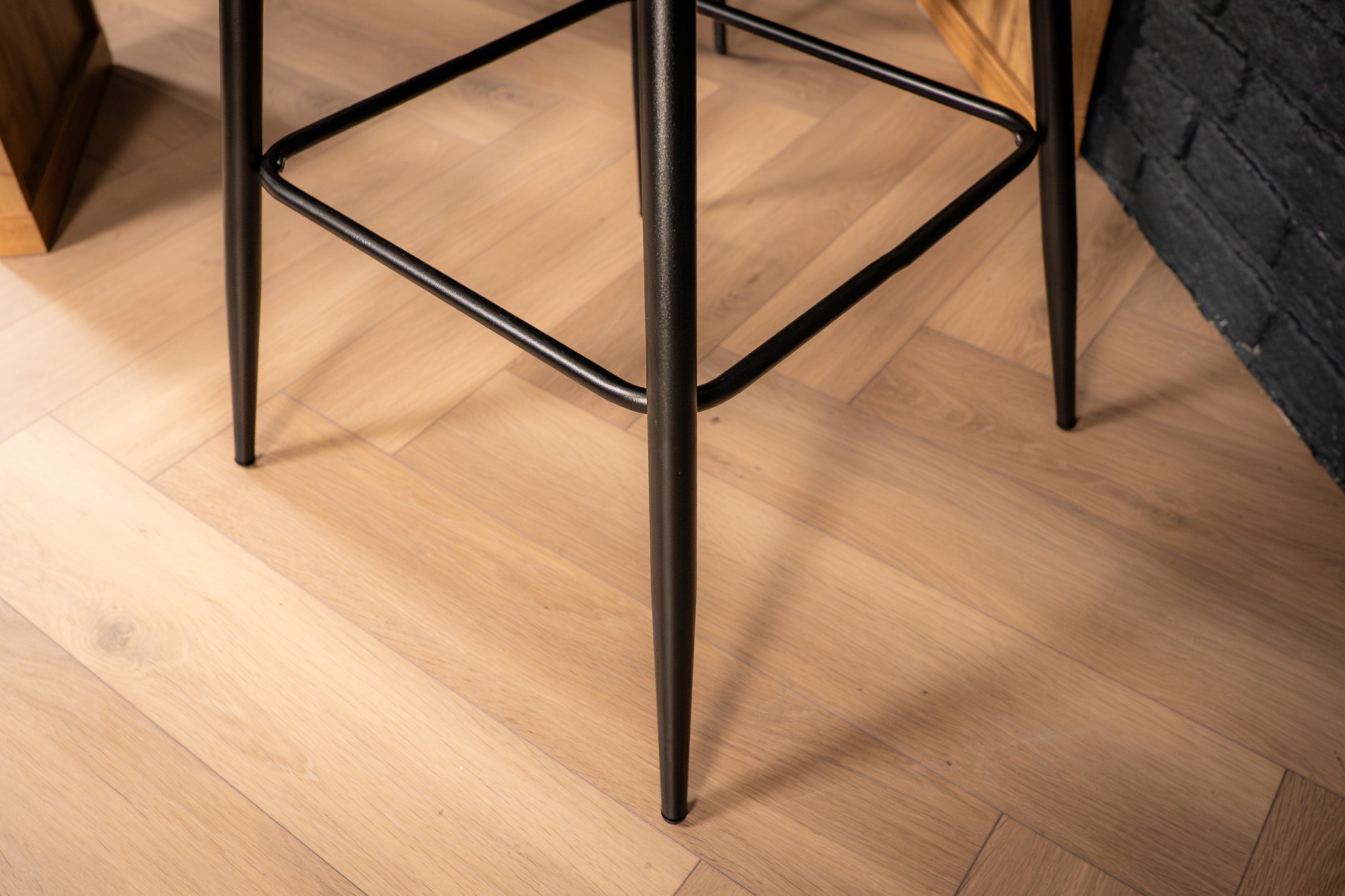 Slim black metal legs add a modern contrast and stability
