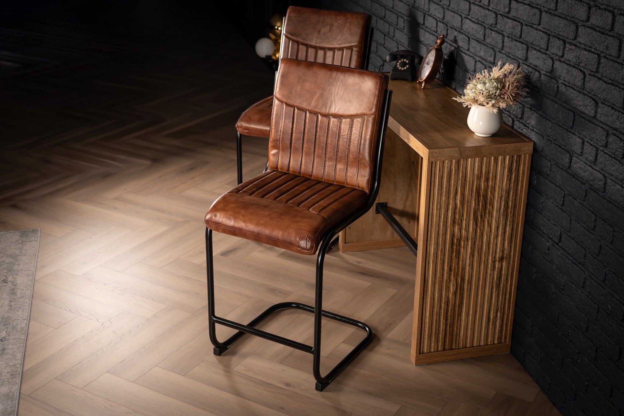 Veneto Genuine Leather Cantilever Barstool Chair Brown