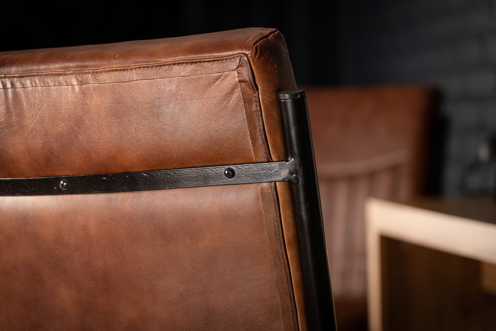 Veneto barstool is crafted from a sturdy yet sumptuous genuine goat leather, with a high backrest and cushioned seats for maximum comfort. Add a little bit of old-world charm into a contemporary space with these strikingly designed barstools. A comfortable seat with distinctive stitching sits atop black metal legs, a striking contrast.