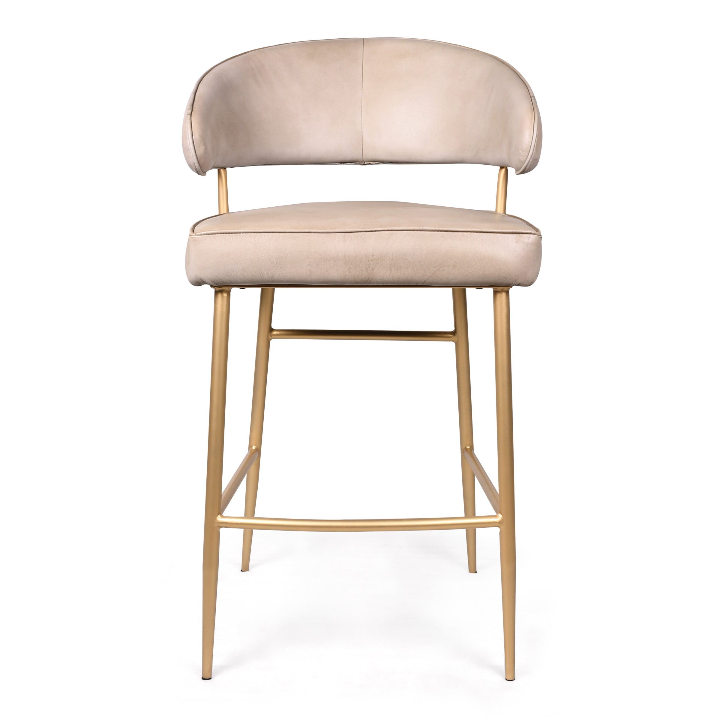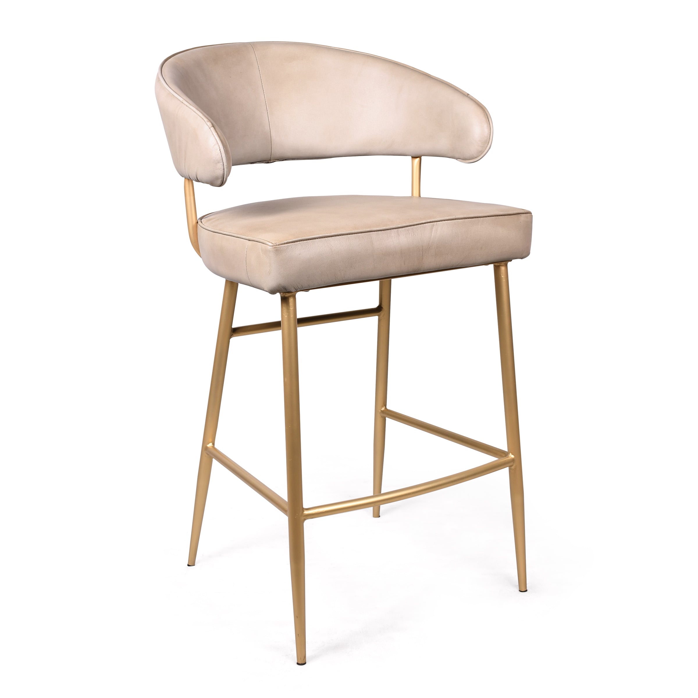 Vienna Genuine Leather Bar Stool in Beige with Golden Legs