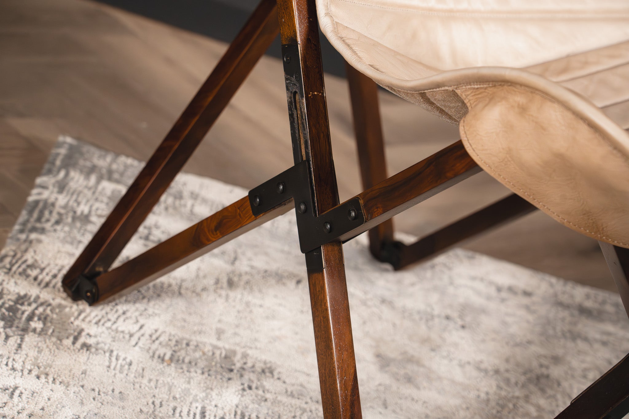 Butterfly Retro Style Genuine Leather Lounge Chair in Beige with Wooden Foldable Frame