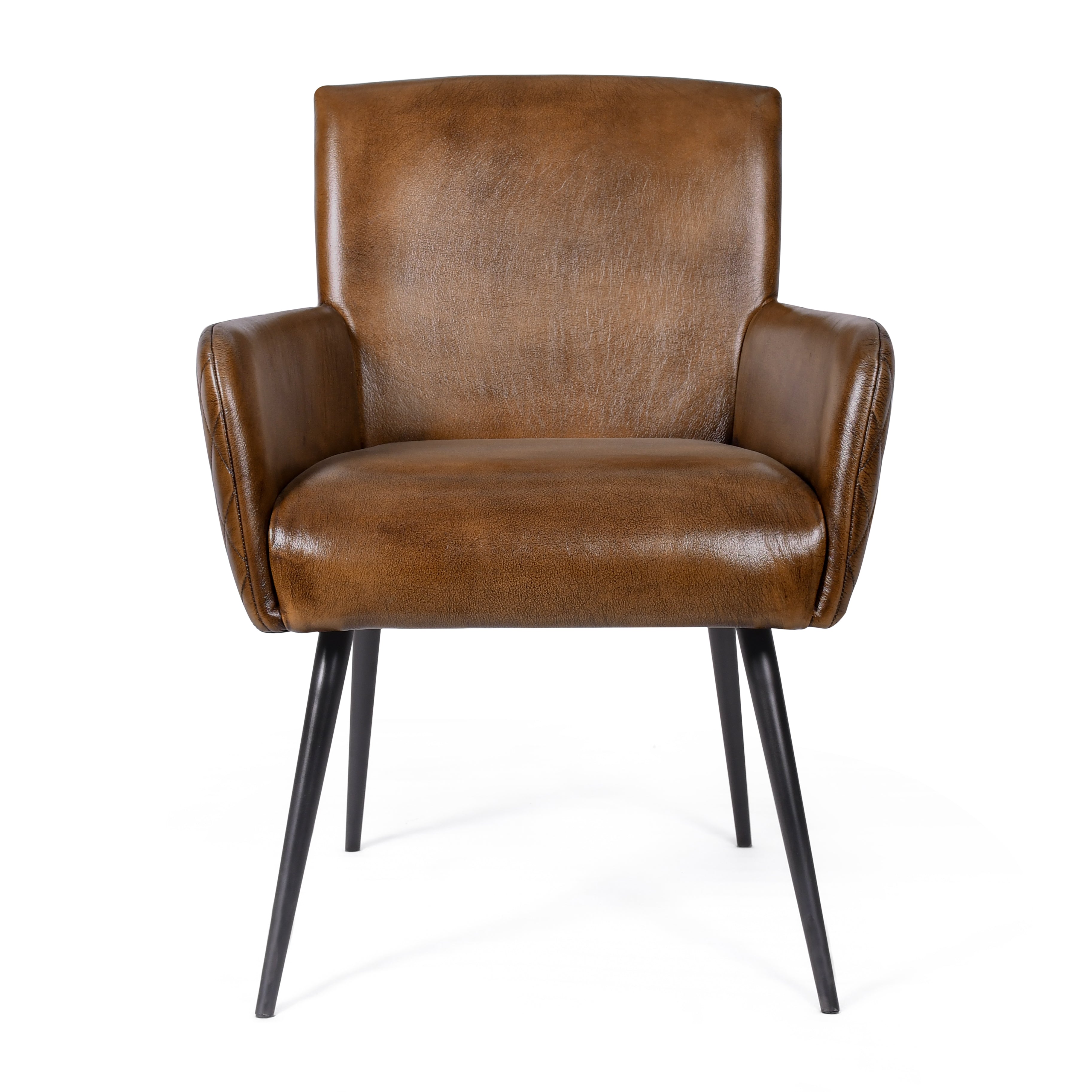 Hudson Genuine Leather Armchair Dining Chair in Antique Brown and Black Metal Legs