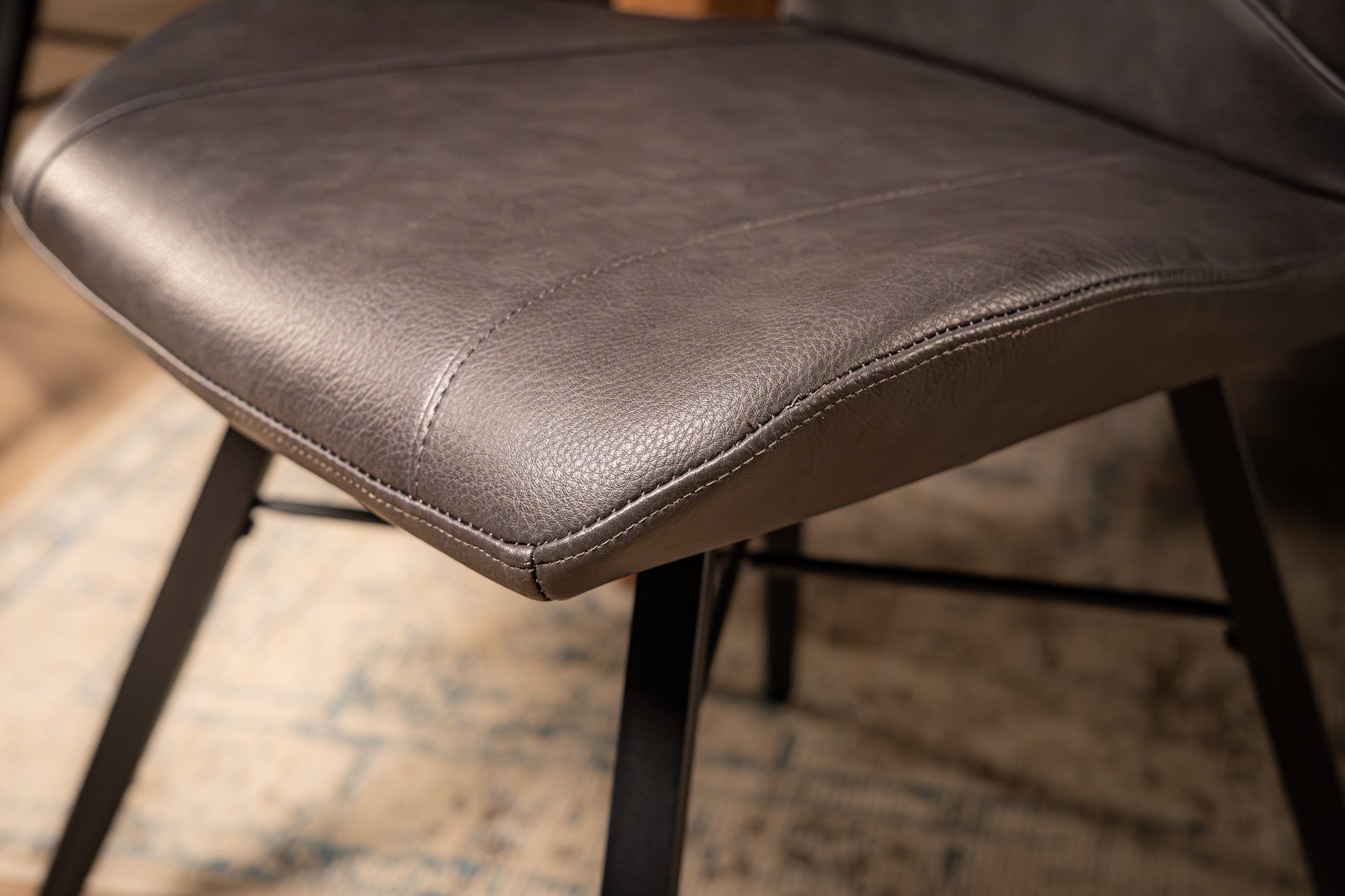 Orion Faux Leather Dining Chair in Grey with Black Powder Coated Metal Legs