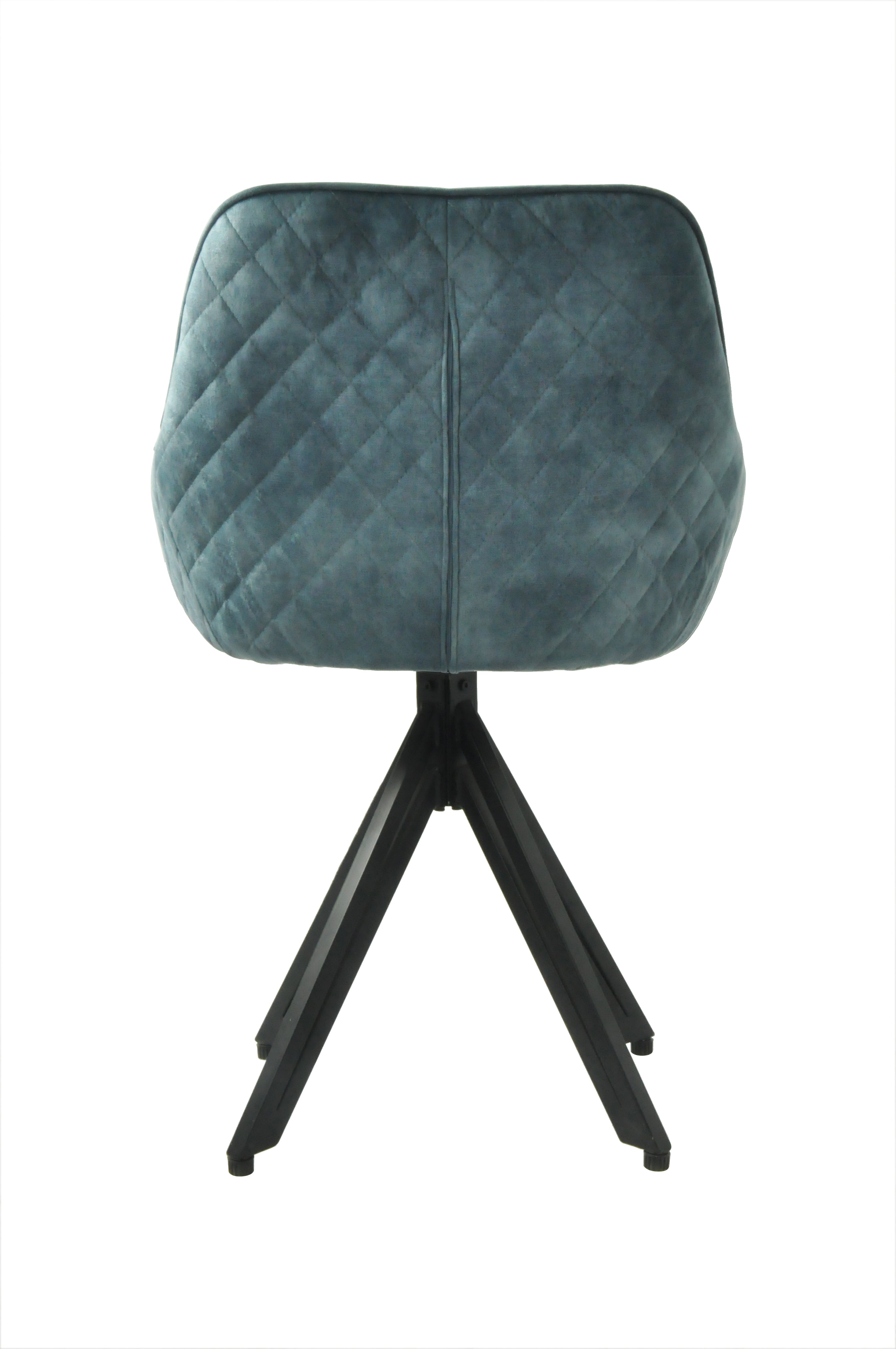 Terra Rotatable Petrol Blue Velvet Dining Chair with Diamond Quilting and Black Coated Legs