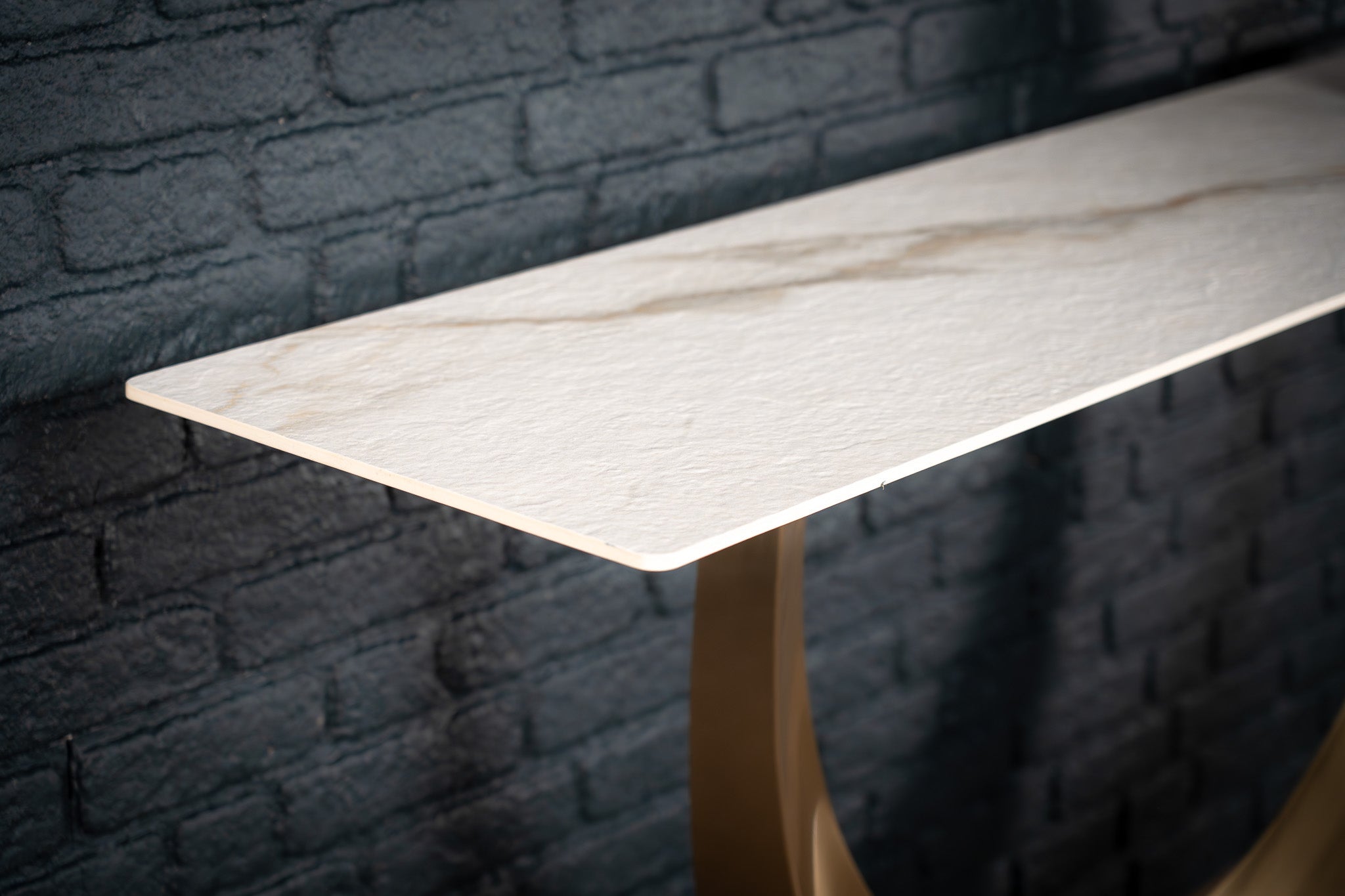 Cetona Italian Sintered Stone Console Table in White Concrete Gold Marble Look 160 cm