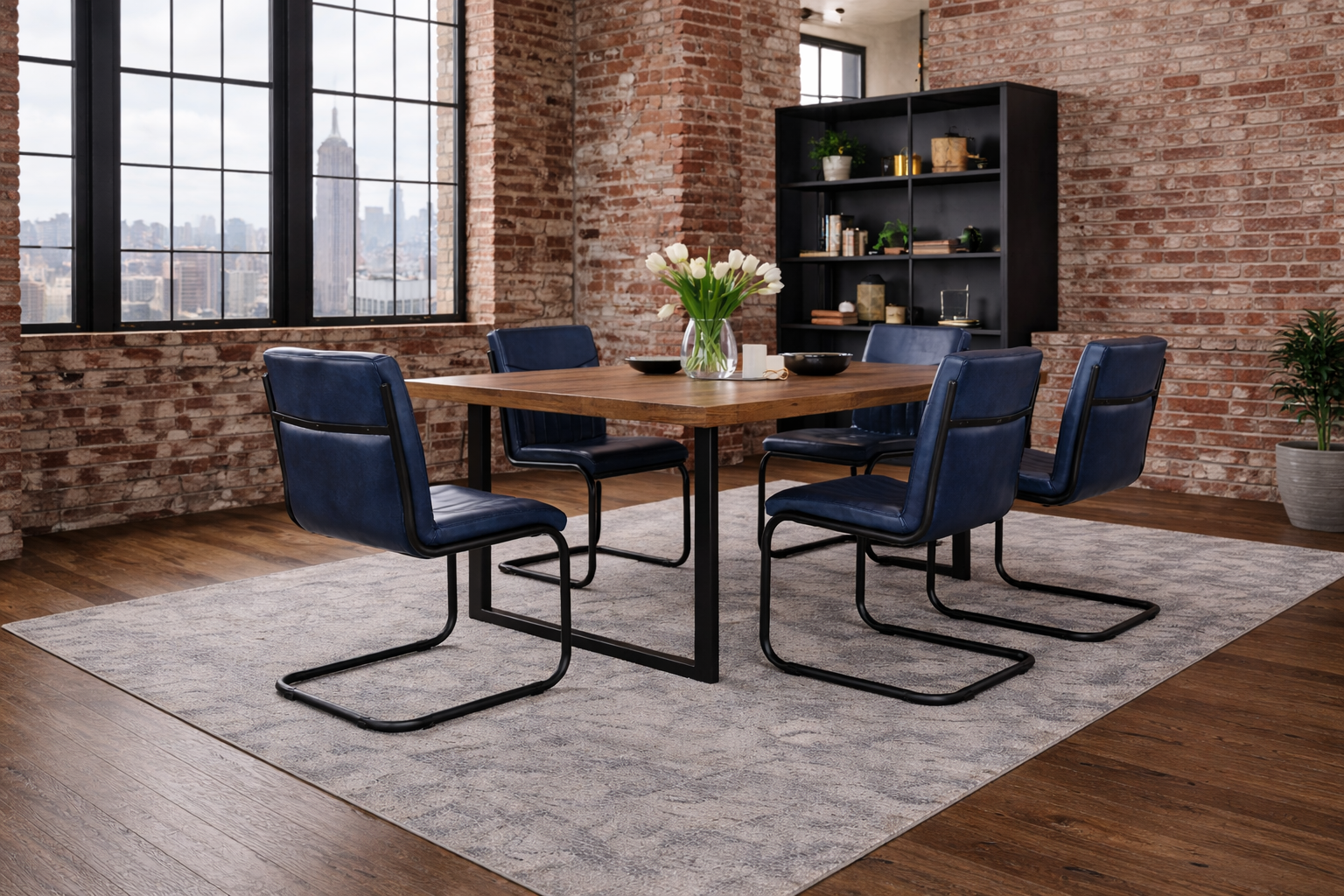 Veneto Leather Cantilever Dining Chair in Navy Blue