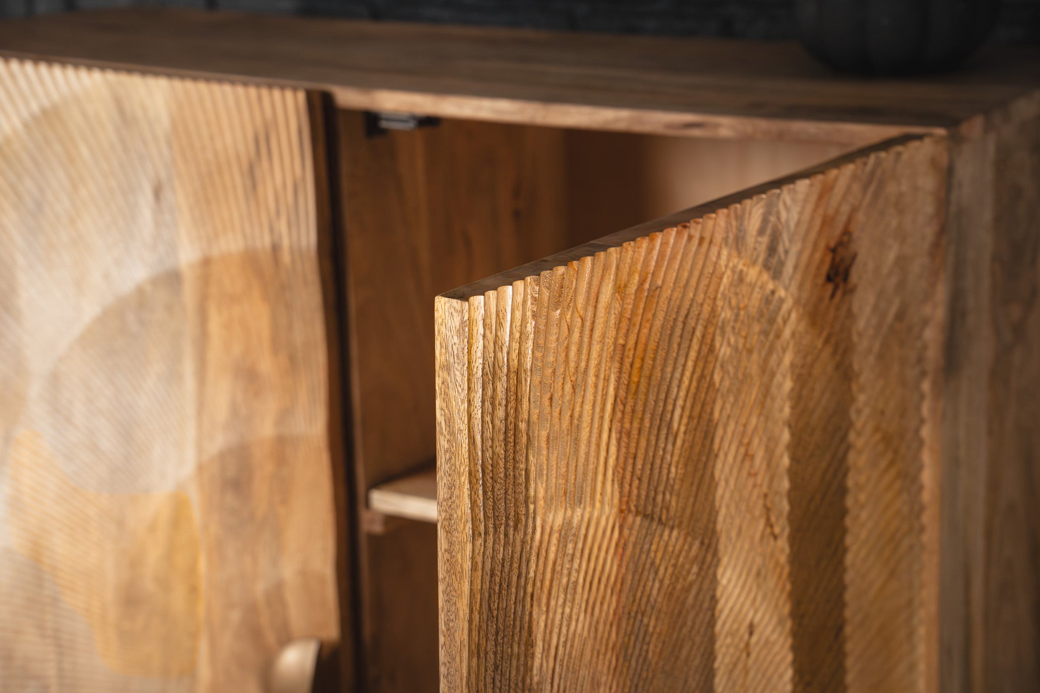 Extravagant highboard crafted from solid mango wood with a natural finish