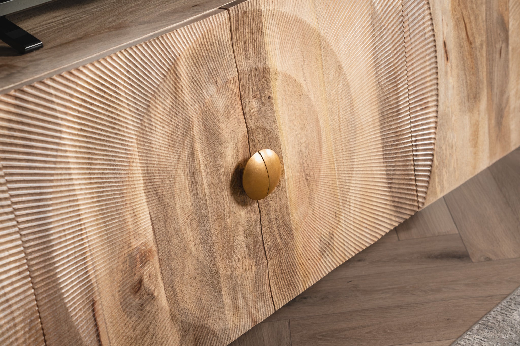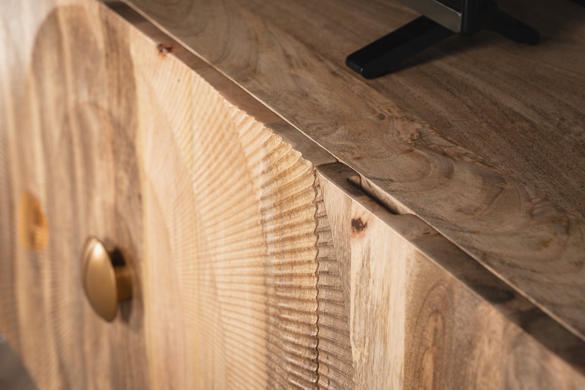 The Sunset TV Unit functions as both a media console and a work of art. The golden central accent adds a refined touch, while the natural finish ensures harmony with a wide palette of décor styles. Ideal for those who appreciate design that’s impactful, earthy, and enduring.
