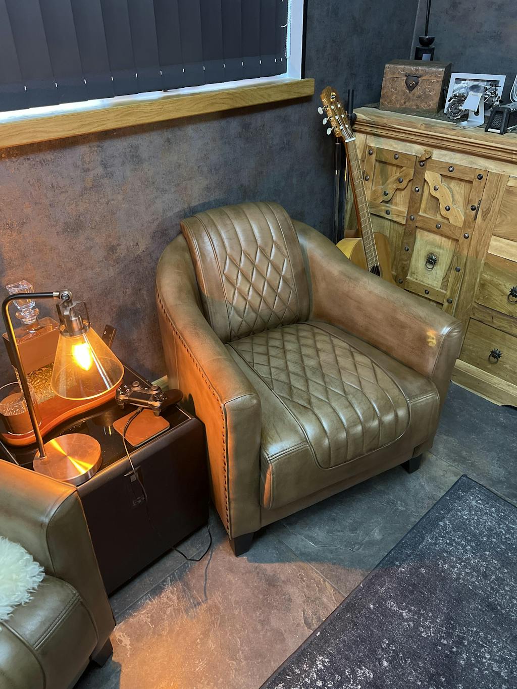 I ordered 1 Chicago leather chair to check the quality and to see how it would fit in my room. The quality and colour of leather was lovely, it's neat enough to have a couple in the same room. The back is quite low so not a snoozing chair but definitely comfortable enough to watch TV or for extra seating when entertaining. I have now ordered a second chair with a discount code offered off my next order. Excuse the room decor in photo, we're not decorated yet.
