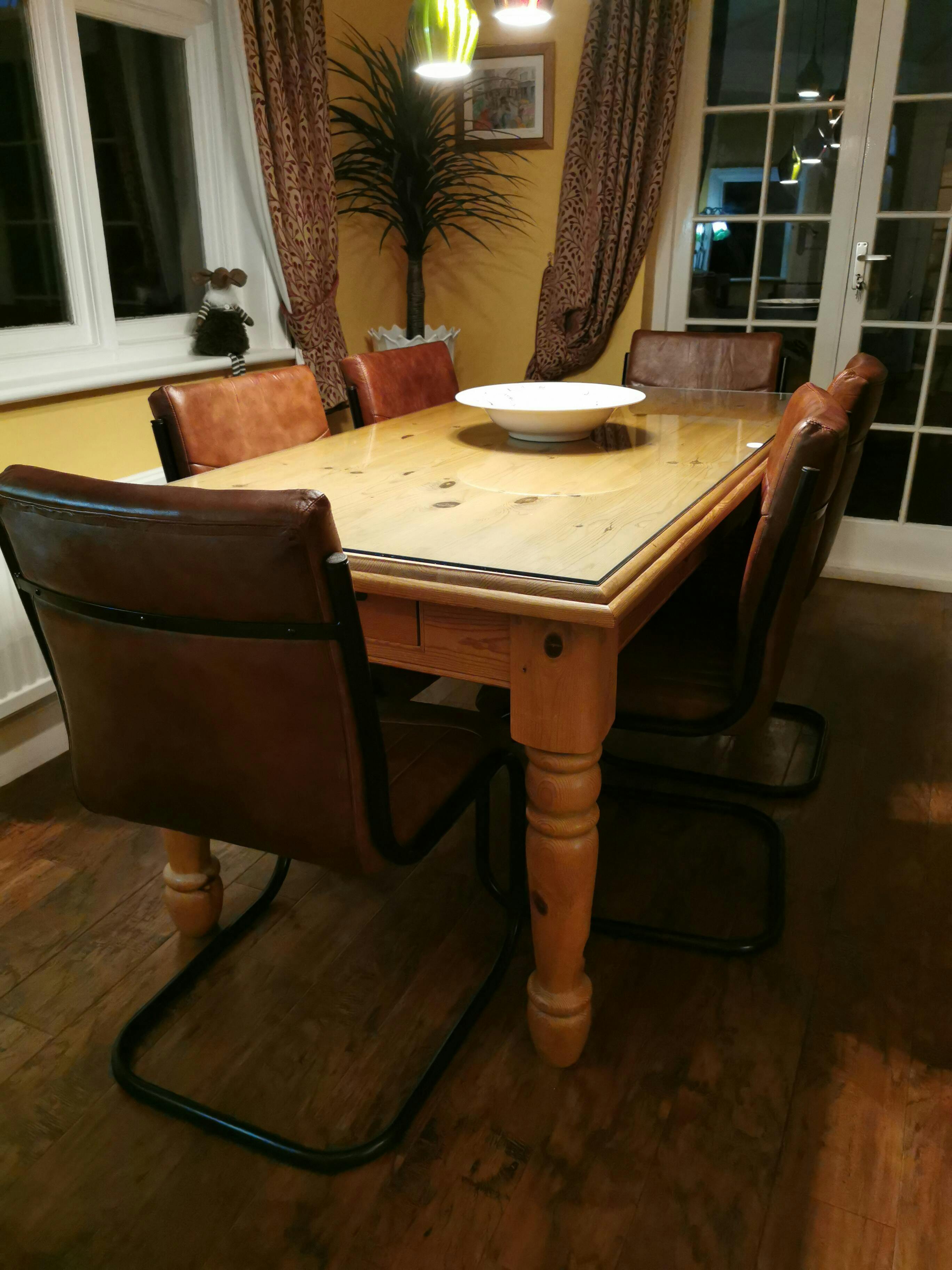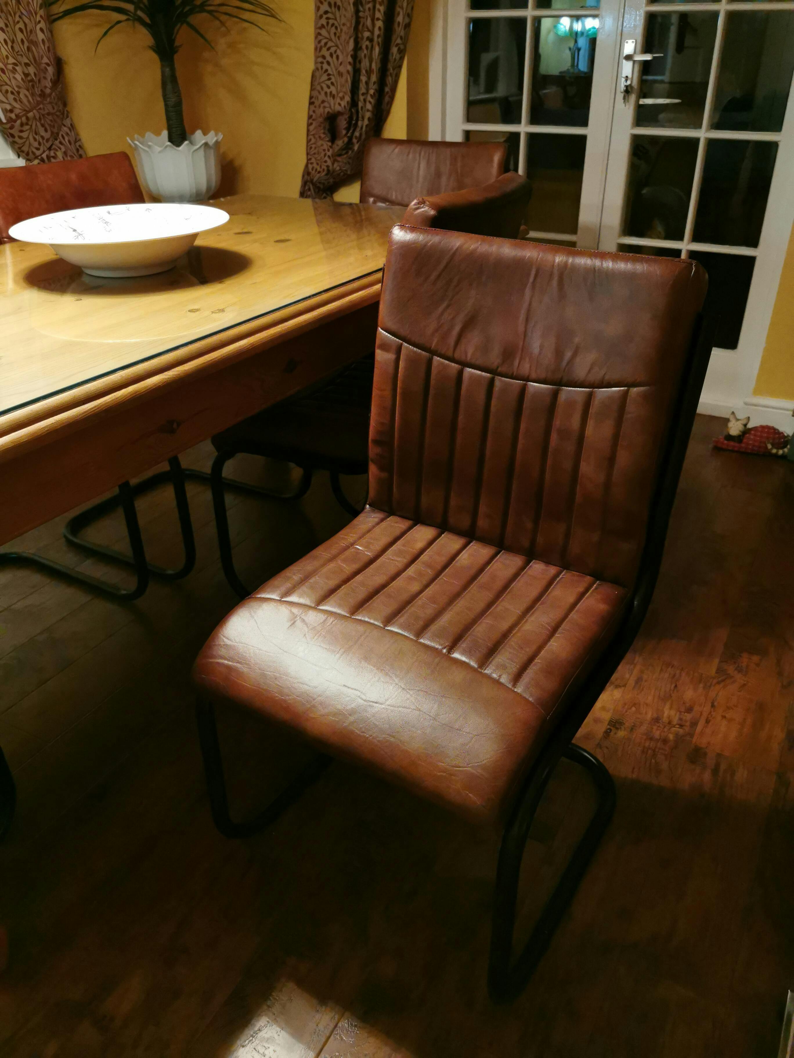 They are a lot darker in real life than they appear on the website. I was expecting them to be more of lighter brown, more of a Tan colour, which would have looked better in our room, and we had to wait so long for delivery. That said, they are nice chairs !