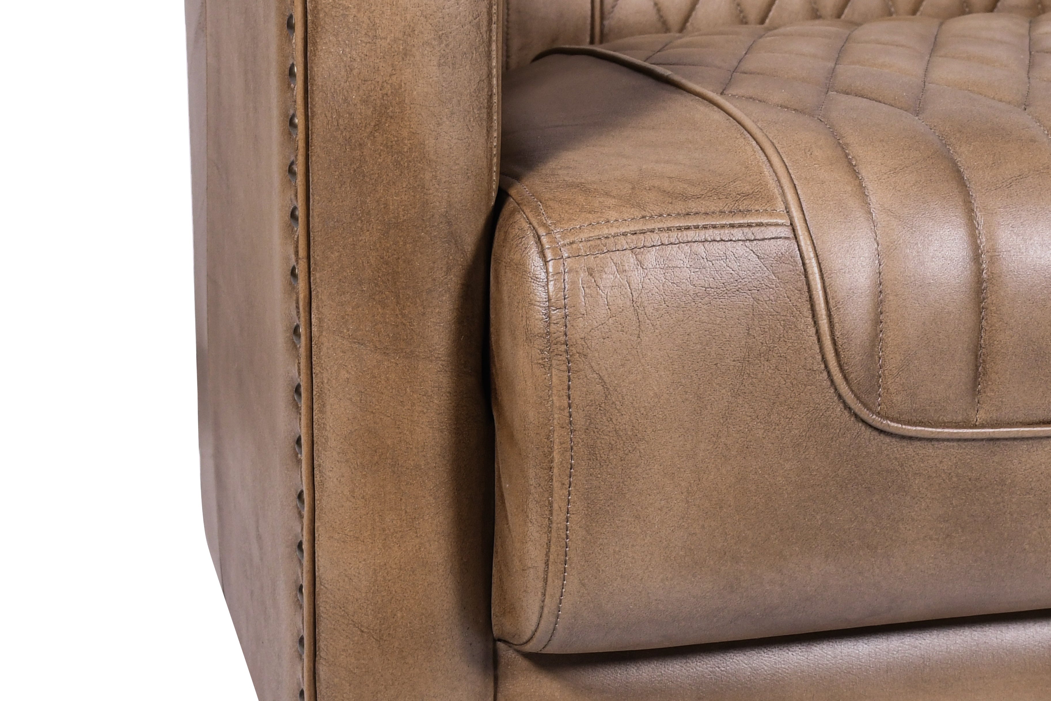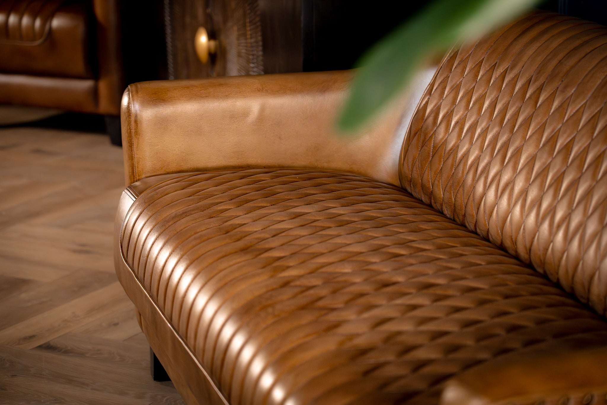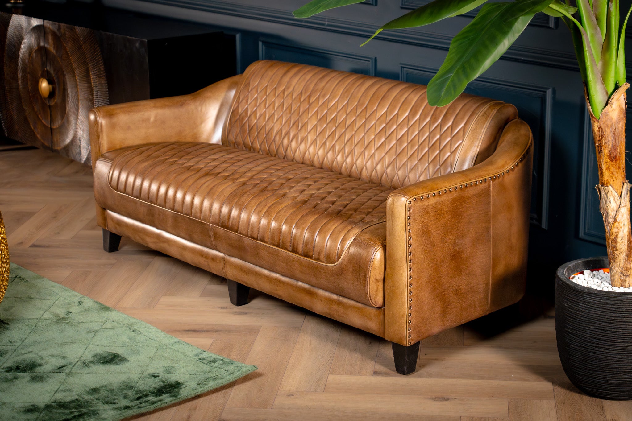 The Chicago Club 3 Seater Sofa brings refined vintage style and superior comfort into your home. Its backrest and seat feature distinctive diamond quilting, enhancing the luxurious character of genuine leather.