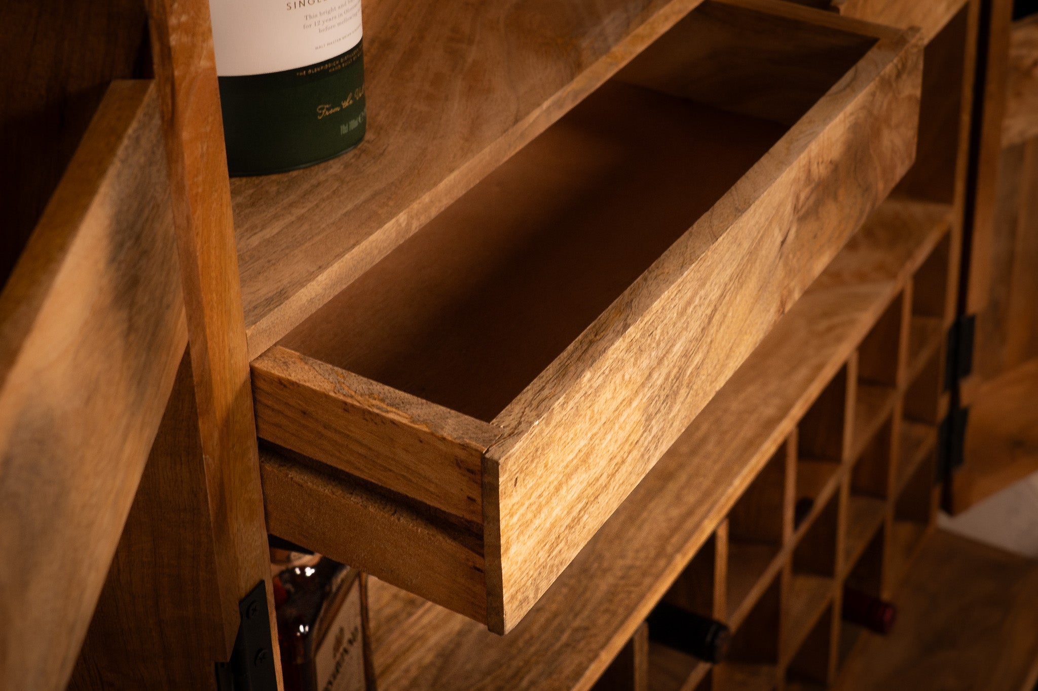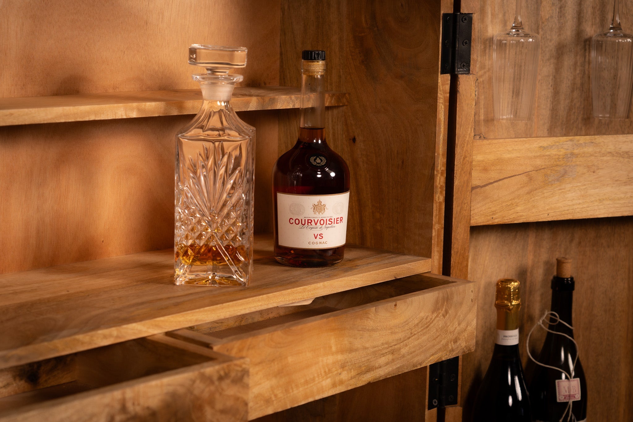 Good solid, beautiful furniture. The only negatives, I had to wait for around 8 weeks to be delivered and the wine glass racks in the doors do not hold the glass in place. Unfortunately when the door was opened two glasses fell out. The racks need to be modified to tilt back to hold the glasses when opening the doors.