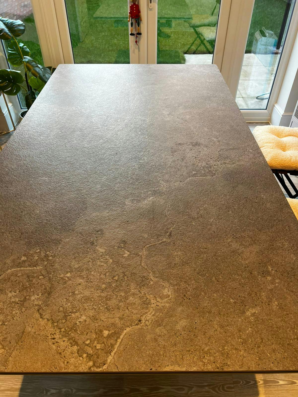 The Apollo sintered stone extendable dining table encapsulates modern elegance with its robust, angular geometric base supporting a luxurious expanse of top-grade Italian stone. The design of the Apollo table is characterised by its innovative, angular base, which not only provides exceptional stability but also acts as a sculptural element in its own right. Crafted from premium materials, the base is designed to be both a functional support and a statement piece, enhancing the sophistication of any dining space.